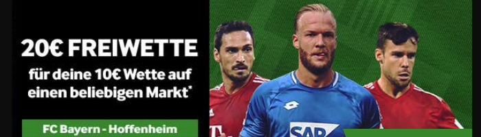 Betway: 10 Euro auf Bayern gegen Hoffenheim setzen und 20 Euro Freiwette erhalten!