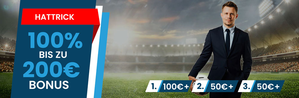 Als Standardofferte gibt’s seit Mitte Juni bei Eaglebet einen Bonus-Hattrick. Ja, Sie haben richtig gelesen, ihre Neukundenprämie erstreckt auf drei Einzahlungsvorgänge, konkret: