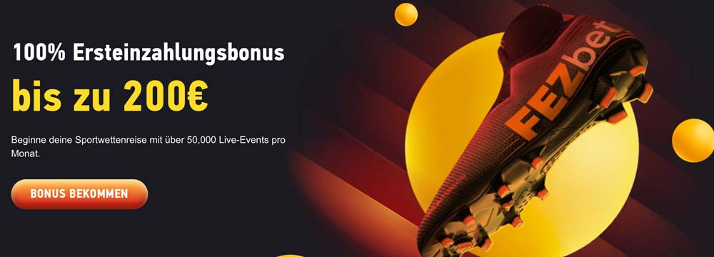 Der FEZbet Willkommensbonus lockt neue Kunden mit bis zu 200€ auf die 1. Einzahlung Mit FEZbet ist vor wenigen Wochen ein neuer Sportwettenanbieter in Deutschland durchgestartet. Mit Erfolg? Dies werden die kommenden Wochen und Monate zeigen. Fakt ist, mit dem Willkommensbonus hat FEZbet direkt ein markantes Ausrufezeichen gesetzt. Sie können sich als Neukunde immerhin ein zusätzliches Wettkapital von bis zu 200 Euro sichern.